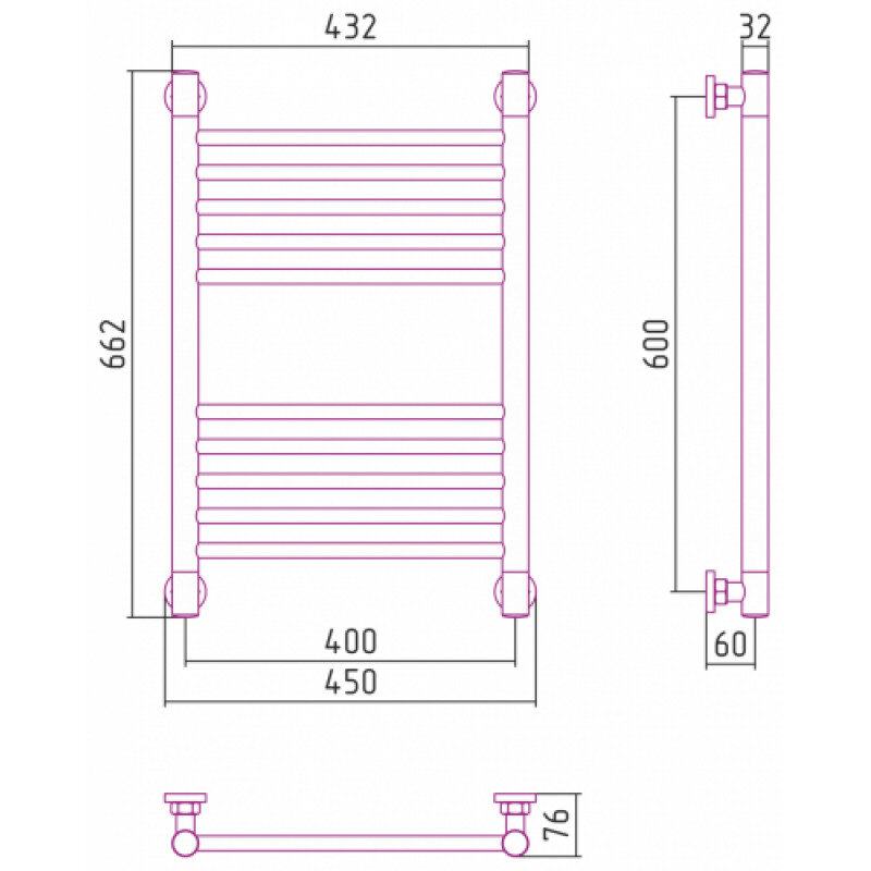Полотенцесушитель водяной Сунержа Богема+ 15-0220-6040, высота 60 см, ширина 40 см, универсальное подключение, цвет тёмный титан муар