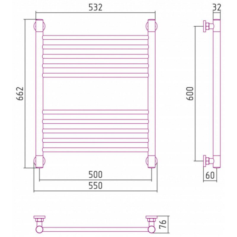 Полотенцесушитель водяной Сунержа Богема+ 15-0220-6050, высота 60 см, ширина 50 см, универсальное подключение, цвет тёмный титан муар