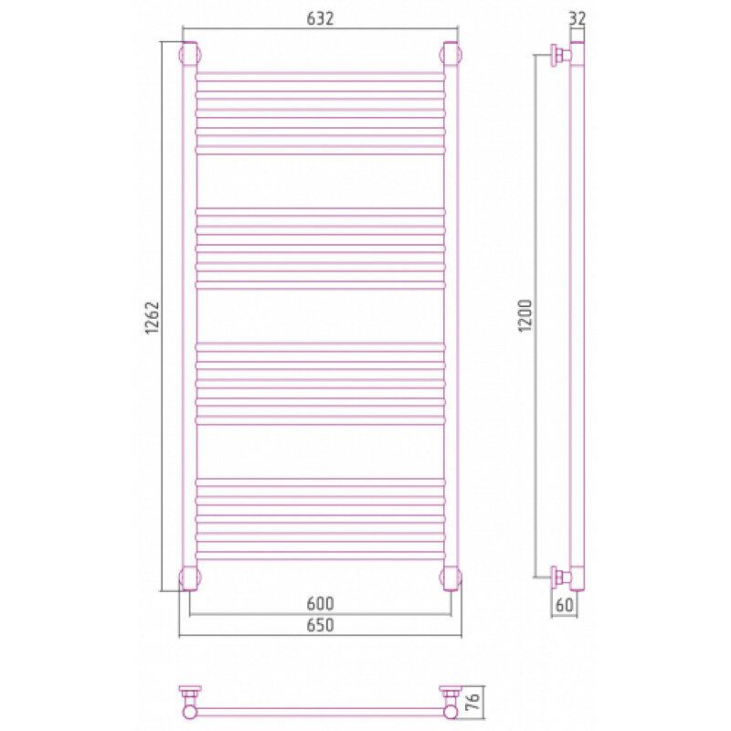 Полотенцесушитель водяной Сунержа Богема+ 30-0220-1260, высота 120 см, ширина 60 см, универсальное подключение, цвет матовый белый