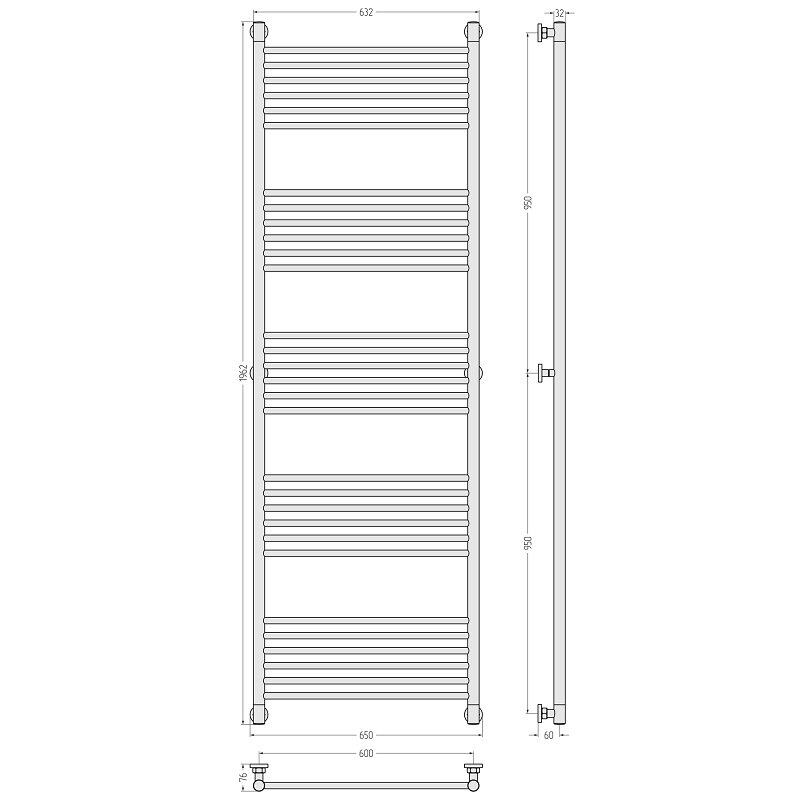 Полотенцесушитель водяной Сунержа Богема+ 30-0220-1960, высота 190 см, ширина 60 см, универсальное подключение, цвет матовый белый