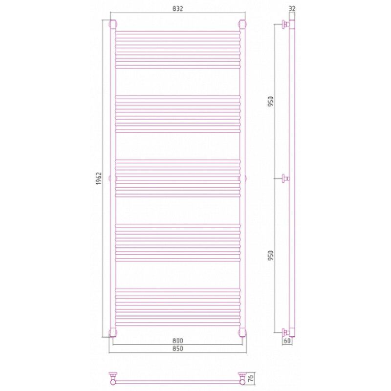 Полотенцесушитель водяной Сунержа Богема+ 31-0220-1980, высота 190 см, ширина 80 см, универсальное подключение, цвет матовый черный