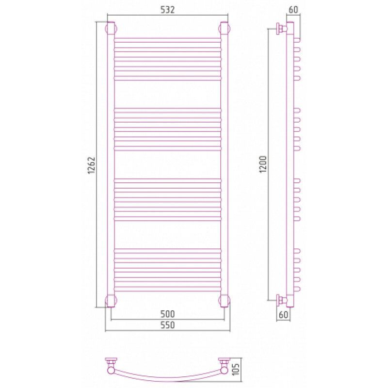 Полотенцесушитель водяной Сунержа Богема+ 31-0221-1250, высота 120 см, ширина 50 см, универсальное подключение, цвет матовый черный