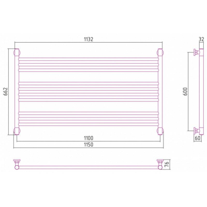 Полотенцесушитель водяной Сунержа Богема L, ширина 110 см, высота 60 см, универсальное подключение, цвет матовое золото, 032-0202-6011
