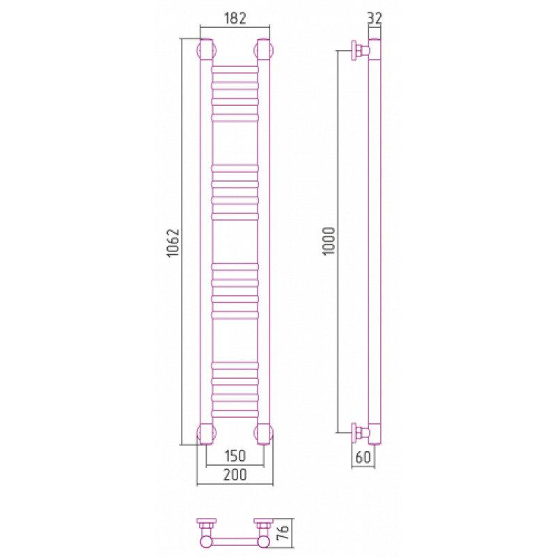 Полотенцесушитель водяной Сунержа Богема+, высота 100 см, ширина 15 см, универсальное подключение, цвет золото, 03-0220-1015