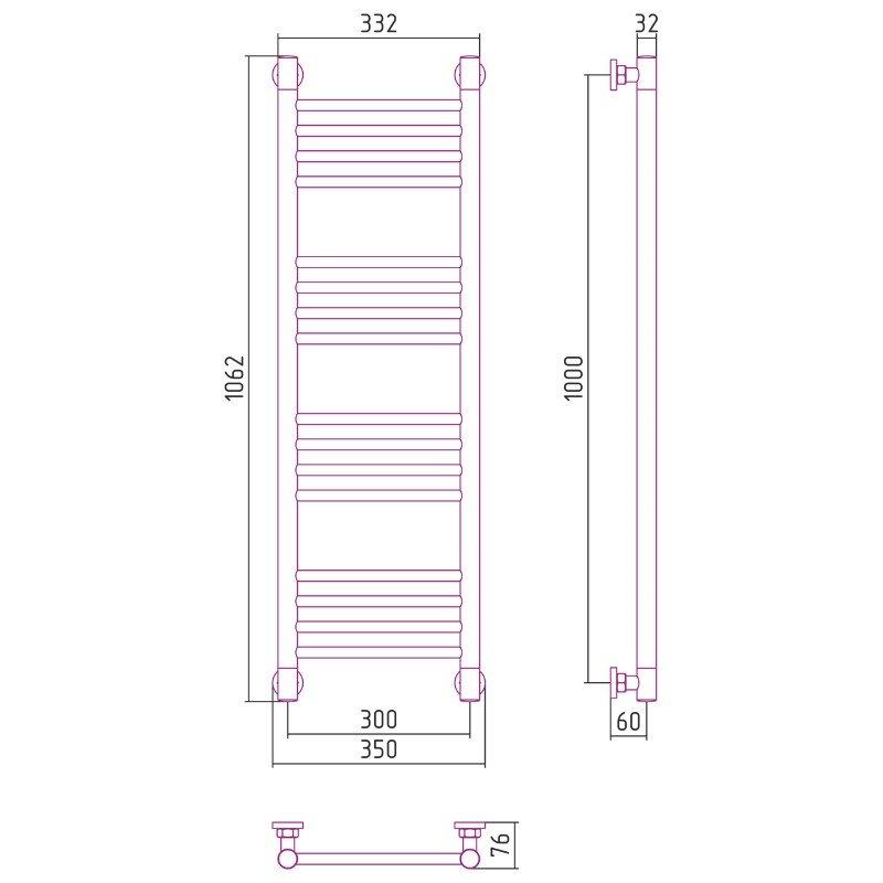 Полотенцесушитель водяной Сунержа Богема+, высота 100 см, ширина 30 см, цвет шампань, 020-0220-1030