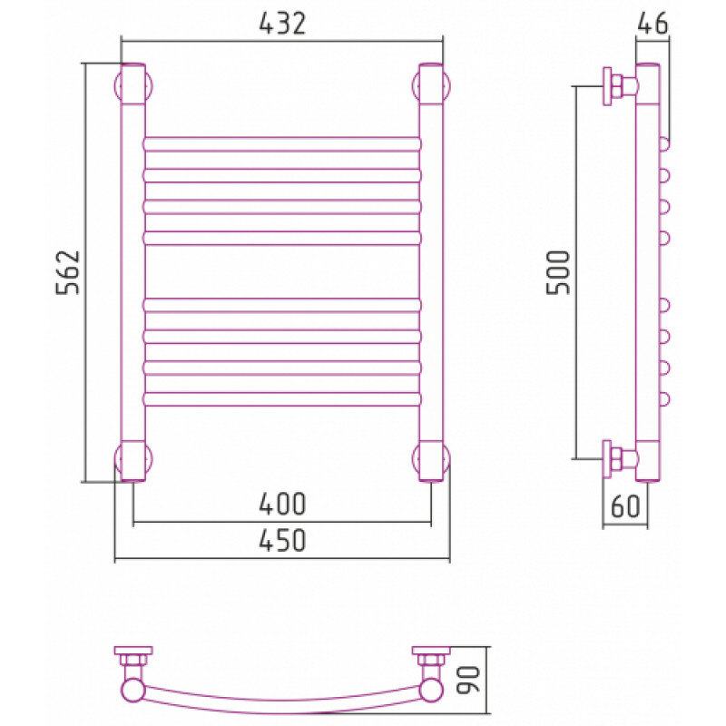 Полотенцесушитель водяной Сунержа Богема+, высота 50 см, ширина 40 см, универсальное подключение, цвет золото, 03-0221-5040