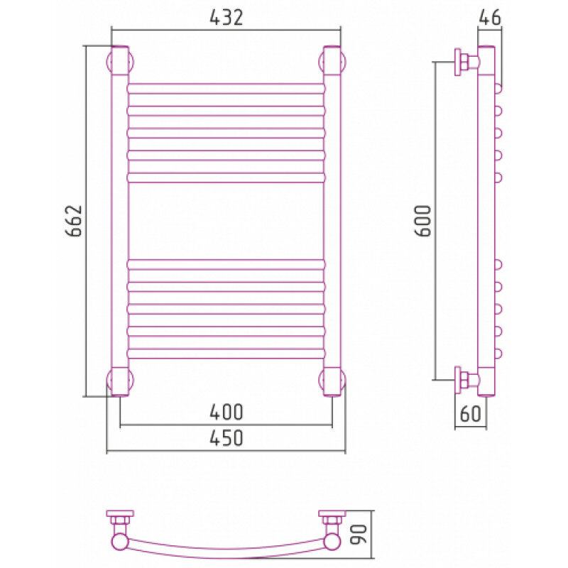 Полотенцесушитель водяной Сунержа Богема+, высота 60 см, ширина 40 см, цвет матовое золото, 032-0221-6040