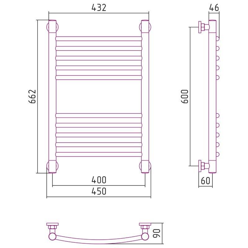 Полотенцесушитель водяной Сунержа Богема+, высота 60 см, ширина 40 см, цвет шампань, 020-0221-6040