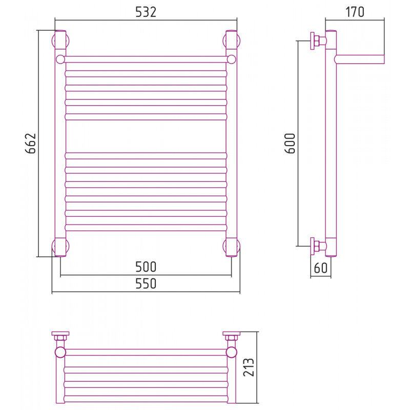 Полотенцесушитель водяной Сунержа Богема+, высота 60 см, ширина 50 см, цвет матовая шампань, 022-0223-6050