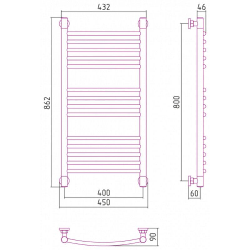 Полотенцесушитель водяной Сунержа Богема+, высота 80 см, ширина 40 см, универсальное подключение, цвет матовая шампань, 022-0221-8040