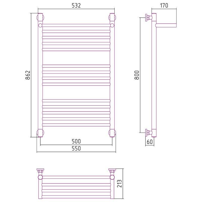 Полотенцесушитель водяной Сунержа Богема+, высота 80 см, ширина 50 см, с полкой, цвет шампань, 020-0223-8050