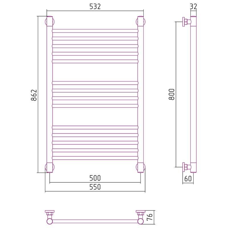 Полотенцесушитель водяной Сунержа Богема+, высота 80 см, ширина 50 см, цвет шампань, 020-0220-8050