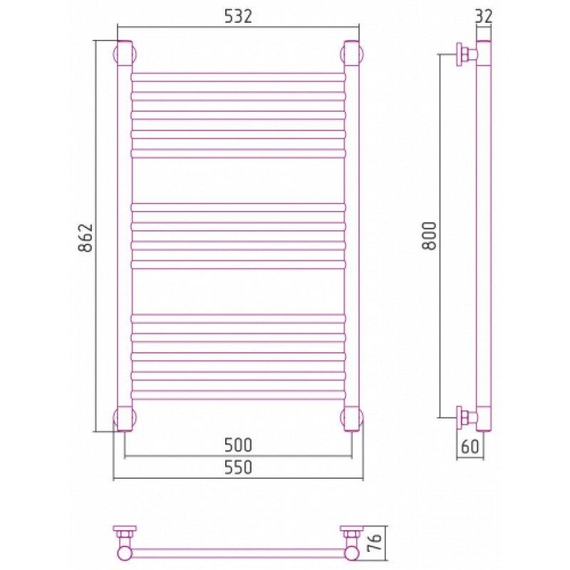 Полотенцесушитель водяной Сунержа Богема+, высота 80 см, ширина 50 см, универсальное подключение, цвет матовая шампань, 022-0220-8050
