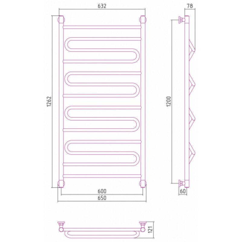 Полотенцесушитель водяной Сунержа Элегия+ 30-0205-1260, высота 120 см, ширина 60 см, универсальное подключение, цвет матовый белый