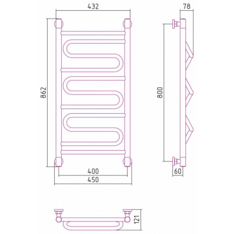 Полотенцесушитель водяной Сунержа Элегия+ 30-0205-8040, высота 80 см, ширина 40 см, универсальное подключение, цвет матовый белый