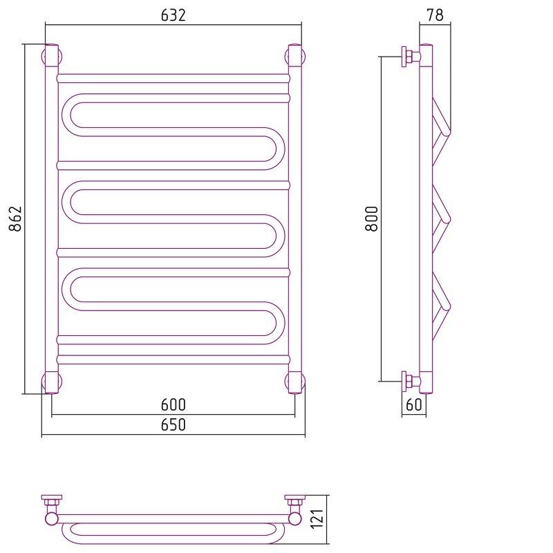 Полотенцесушитель водяной Сунержа Элегия+, 80 х 60 см, цвет шампань, 020-0205-8060