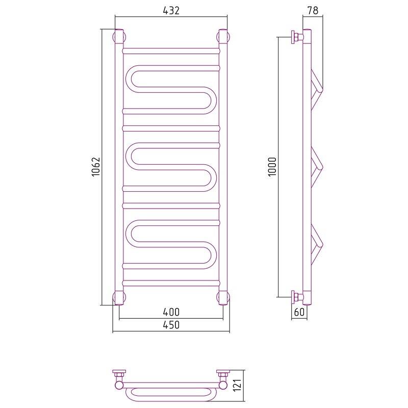 Полотенцесушитель водяной Сунержа Элегия+, ширина 40 см, высота 100 см, цвет шампань, 020-0205-1040