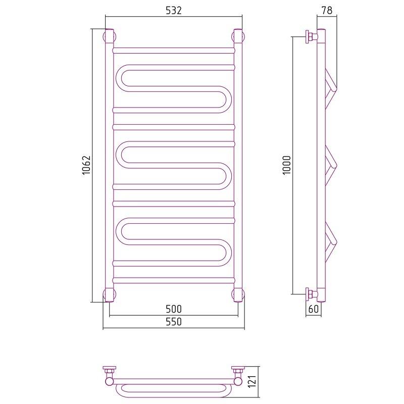 Полотенцесушитель водяной Сунержа Элегия+, ширина 50 см, высота 100 см, цвет шампань, 020-0205-1050