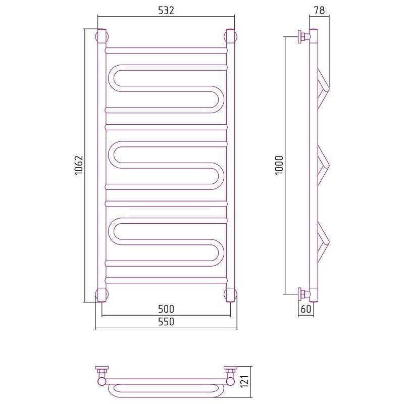 Полотенцесушитель водяной Сунержа Элегия+, ширина 50 см высота 100 см, универсальное подключение, хром, 00-0205-1050