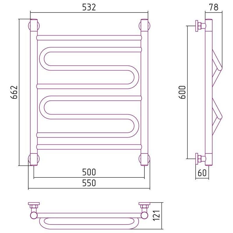 Полотенцесушитель водяной Сунержа Элегия+, ширина 50 см высота 60 см, универсальное подключение, хром, 00-0205-6050