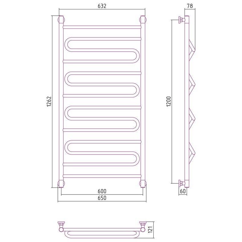 Полотенцесушитель водяной Сунержа Элегия+, ширина 60 см высота 120 см, универсальное подключение, хром, 00-0205-1260