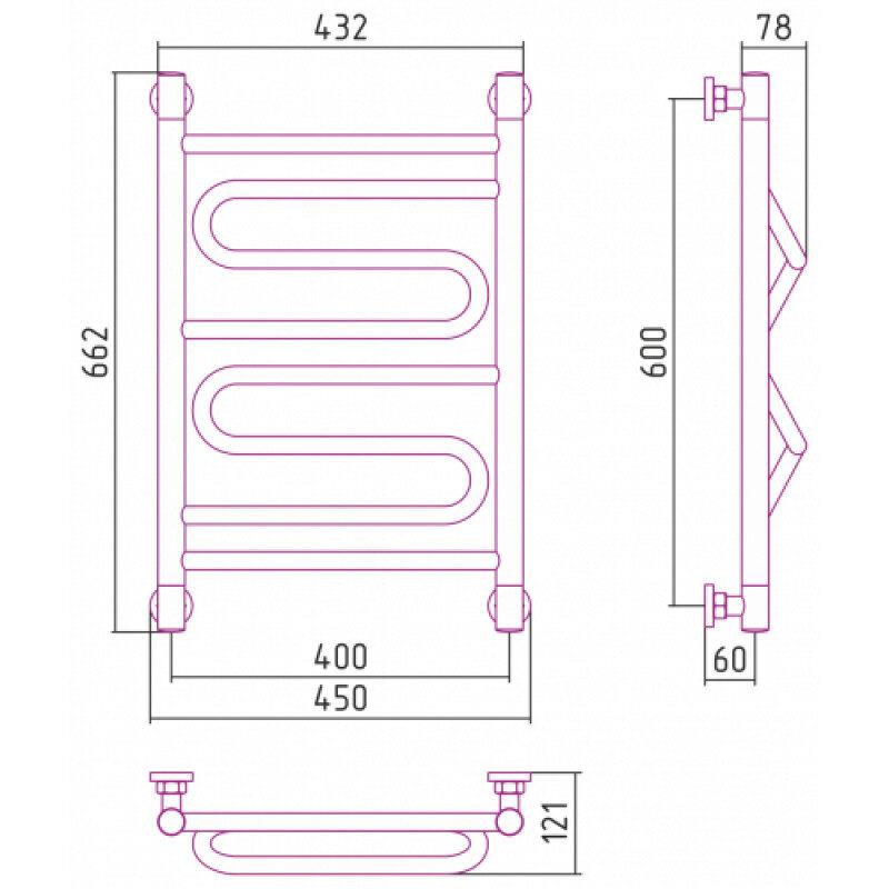 Полотенцесушитель водяной Сунержа Элегия+, высота 60 см, ширина 40 см, универсальное подключение, цвет золото, 03-0205-6040