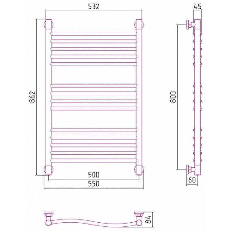 Полотенцесушитель водяной Сунержа Флюид+ 071-0222-8050, высота 80, ширина 50 см, универсальное подключение, цвет сатин
