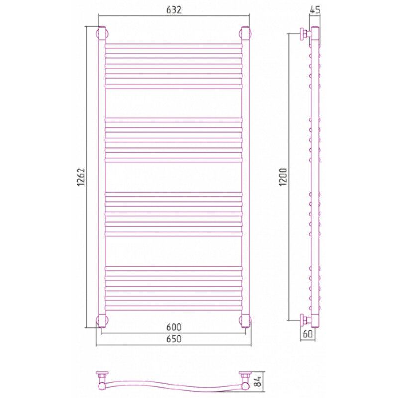 Полотенцесушитель водяной Сунержа Флюид+ 12-0222-1260, высота 120, ширина 60 см, универсальное подключение, цвет белый