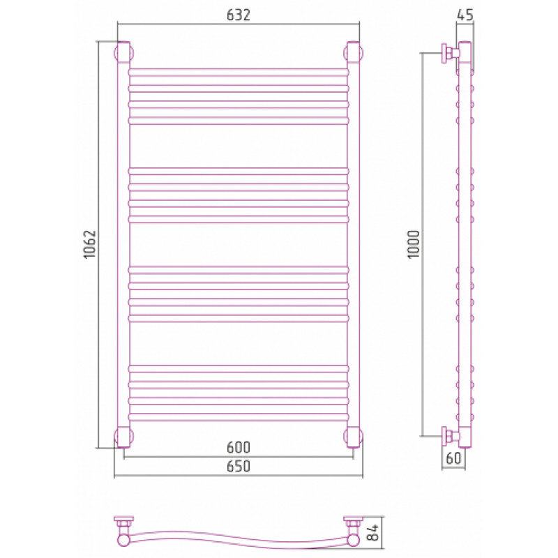 Полотенцесушитель водяной Сунержа Флюид+ 31-0222-1060, высота 100, ширина 60 см, универсальное подключение, цвет матовый черный