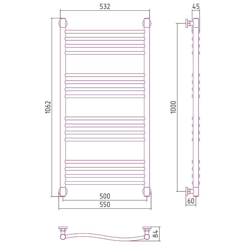 Полотенцесушитель водяной Сунержа Флюид+, высота 100, ширина 50 см, цвет шампань, 020-0222-1050