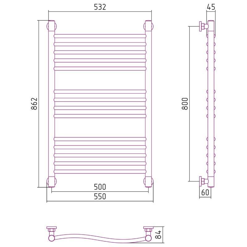 Полотенцесушитель водяной Сунержа Флюид+, высота 80, ширина 50 см, цвет шампань, 020-0222-8050