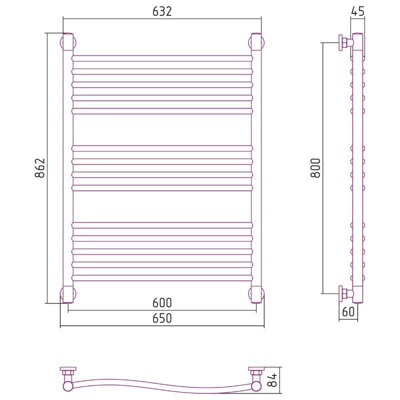 Полотенцесушитель водяной Сунержа Флюид+, высота 80, ширина 60 см, цвет шампань, 020-0222-8060