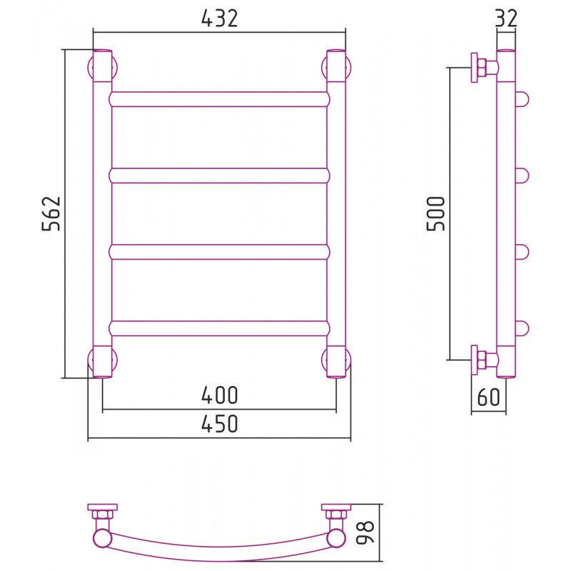Полотенцесушитель водяной Сунержа Галант+ 071-0200-5040, высота 50 см, ширина 40 см, универсальное подключение, цвет сатин