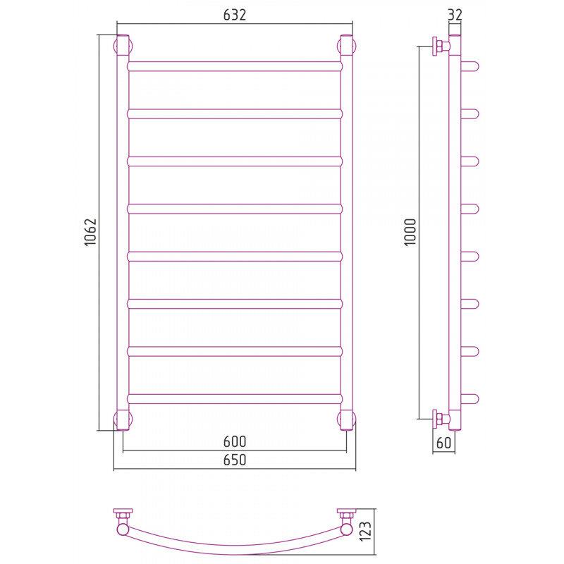 Полотенцесушитель водяной Сунержа Галант+ 12-0200-1060, высота 100 см, ширина 60 см, универсальное подключение, цвет белый