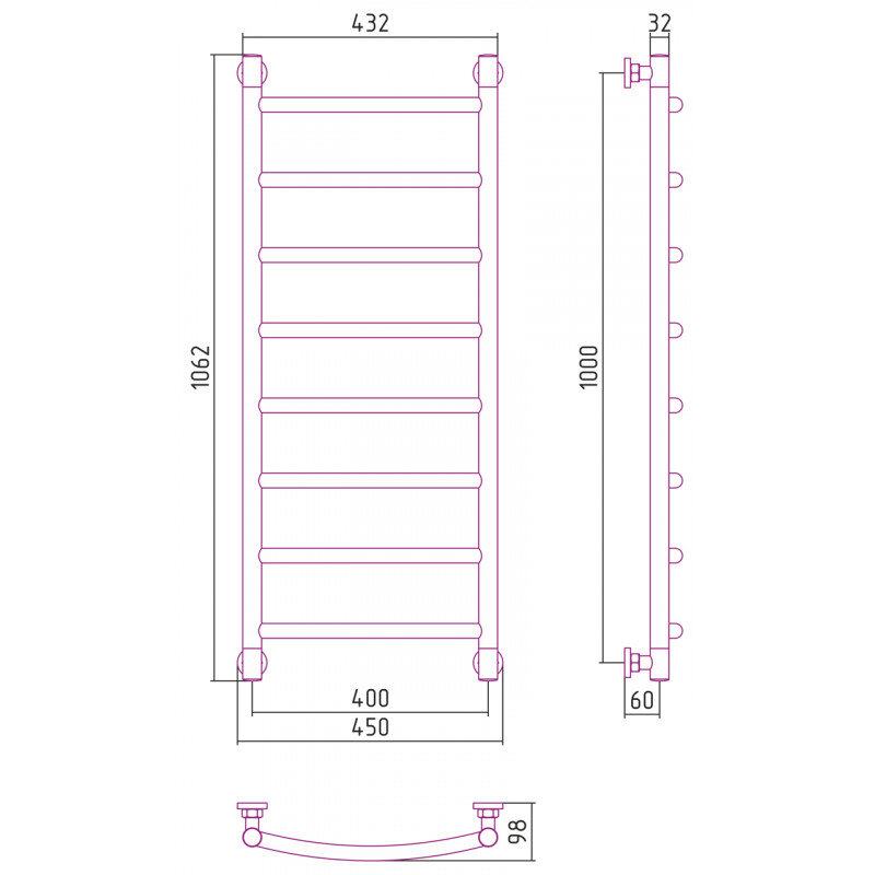 Полотенцесушитель водяной Сунержа Галант+ 31-0200-1040, высота 100 см, ширина 40 см, универсальное подключение, цвет матовый черный