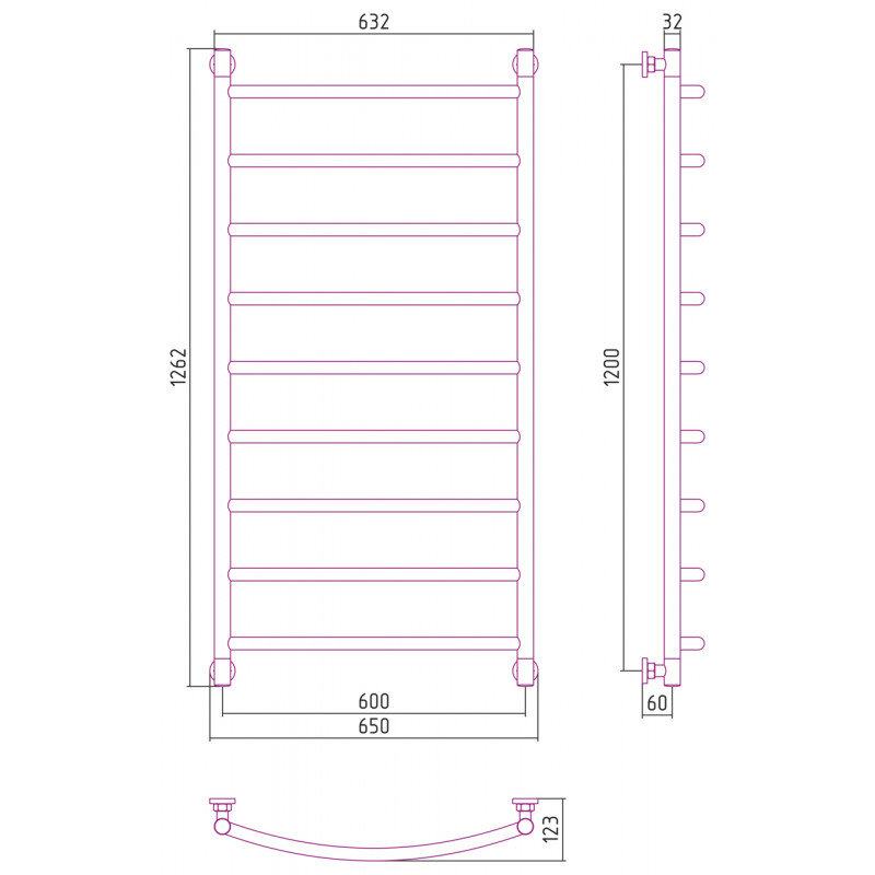 Полотенцесушитель водяной Сунержа Галант+ 31-0200-1260, высота 120 см, ширина 60 см, универсальное подключение, цвет матовый черный