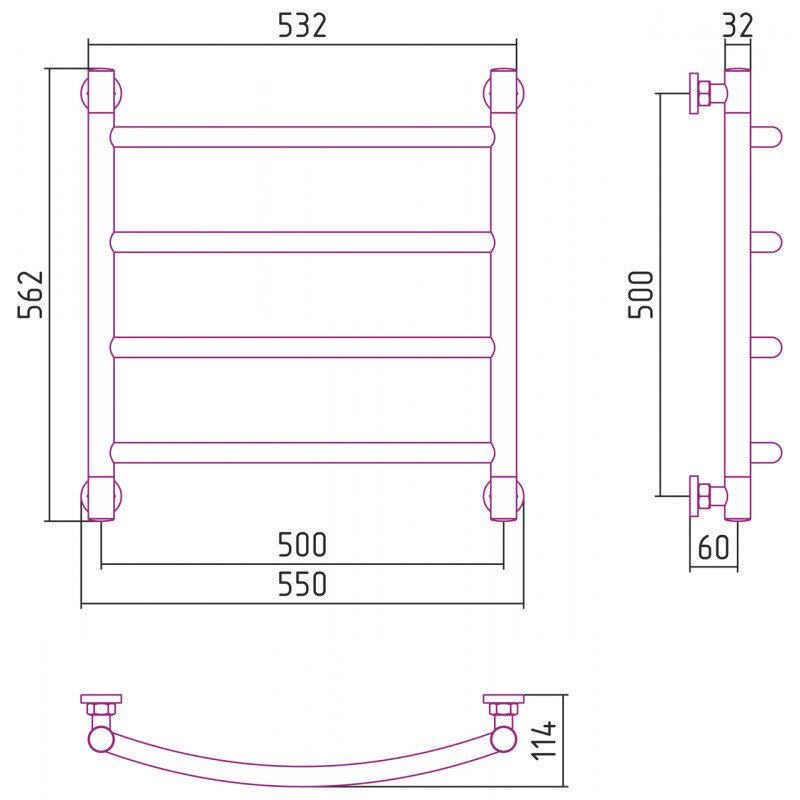 Полотенцесушитель водяной Сунержа Галант+ 31-0200-5050, высота 50 см, ширина 50 см, универсальное подключение, цвет матовый черный