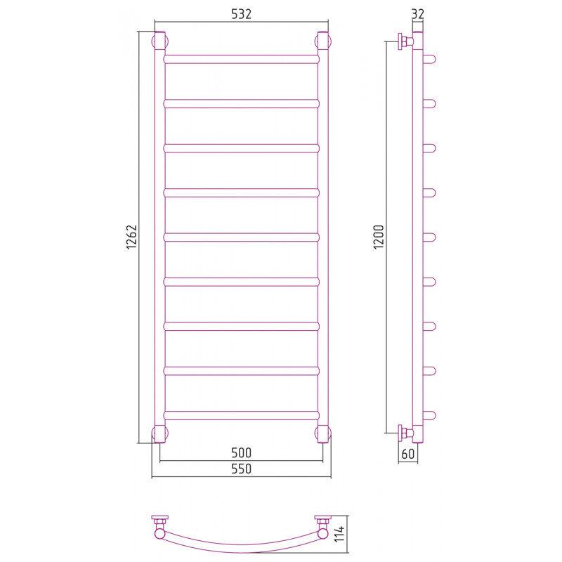 Полотенцесушитель водяной Сунержа Галант+, высота 120 см, ширина 50 см, универсальное подключение, цвет состаренная бронза, 05-0200-1250