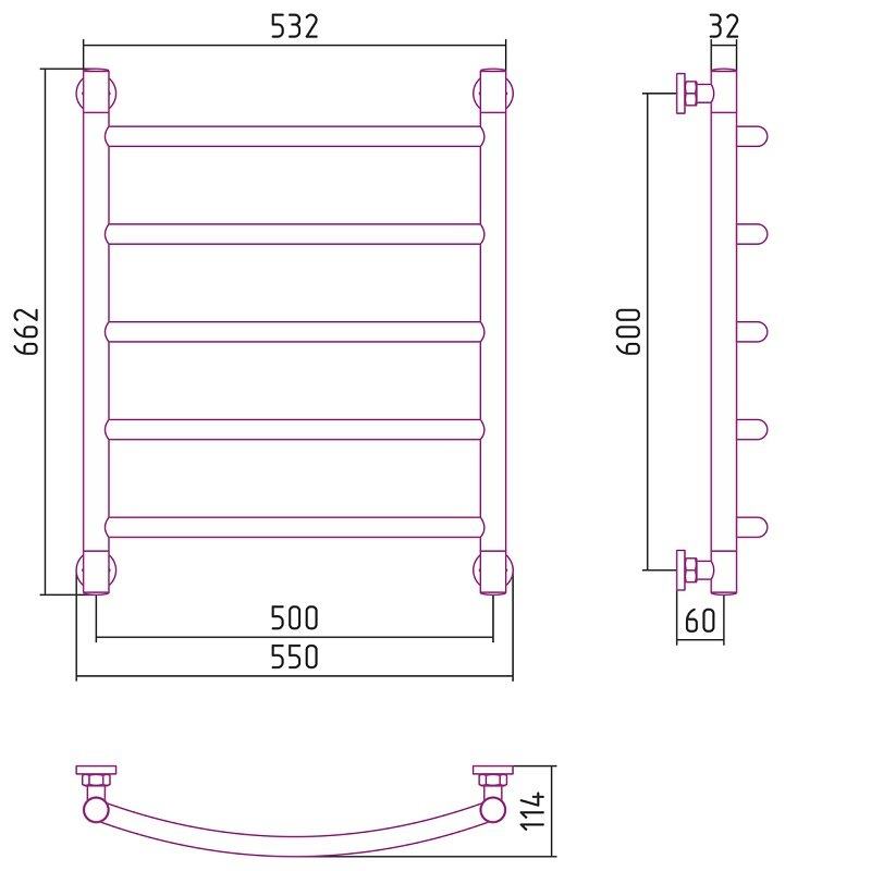 Полотенцесушитель водяной Сунержа Галант+, высота 60 см, ширина 50 см, цвет шампань, 020-0200-6050