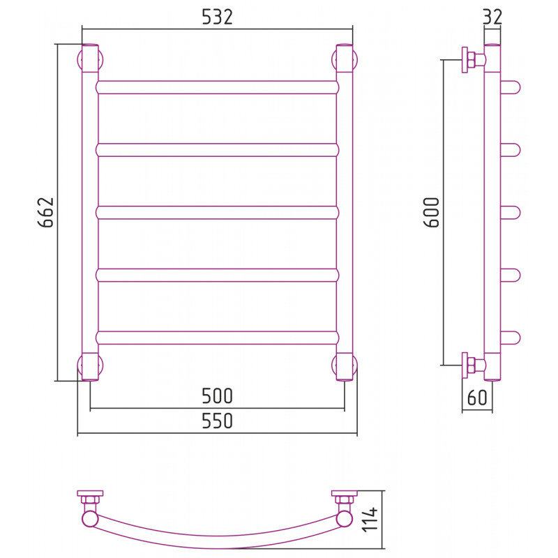 Полотенцесушитель водяной Сунержа Галант+, высота 60 см, ширина 50 см, универсальное подключение, цвет матовое золото, 032-0200-6050