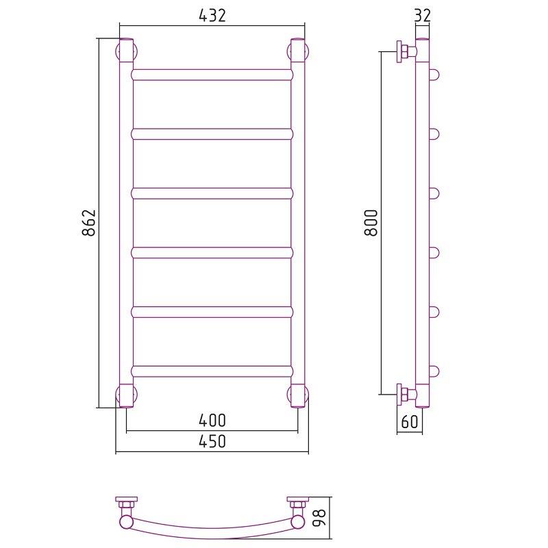 Полотенцесушитель водяной Сунержа Галант+, высота 80 см, ширина 40 см, цвет шампань, 020-0200-8040