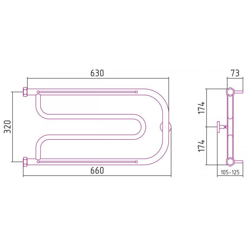 Полотенцесушитель водяной Сунержа Гусли+, высота 32 см, ширина 65 см, 2 полки, цвет матовая шампань, 022-4010-3265