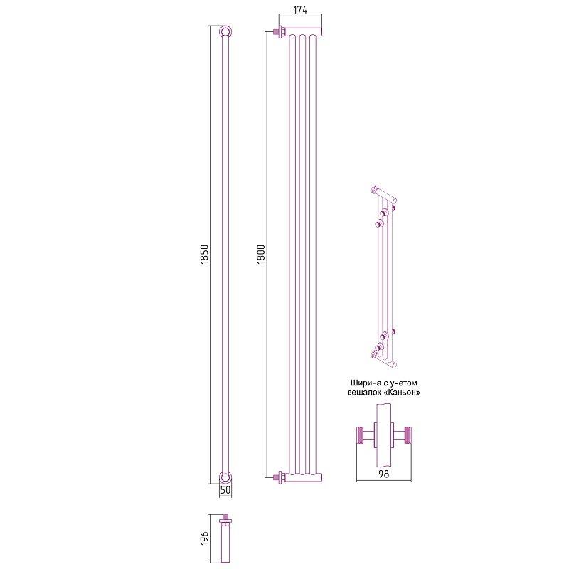 Полотенцесушитель водяной Сунержа Хорда, высота 180 см, ширина 19.5 см, боковое подключение 180 см, 4 вешалки, цвет хром, 00-4124-1800