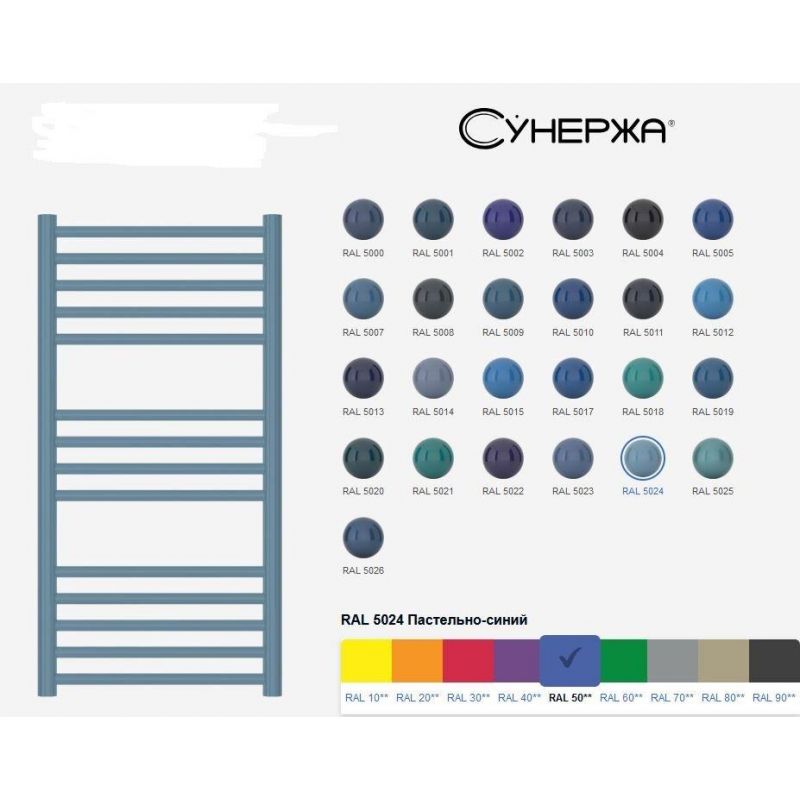 Полотенцесушитель водяной Сунержа Канцлер 5024-0254-1050, высота 100 см, ширина 50 см, нижнее подключение 50 см, цвет пастельно-синий