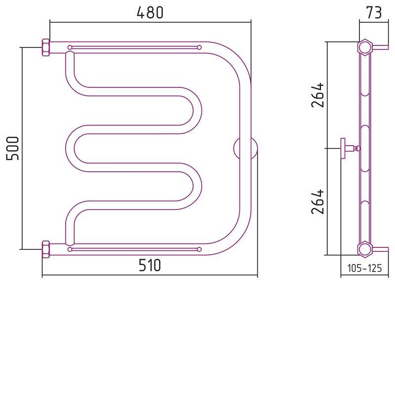 Полотенцесушитель водяной Сунержа Лира, ширина 50 см, высота 50 см, боковое подключение 50 см, 2 полки, цвет шампань, 020-0012-5050