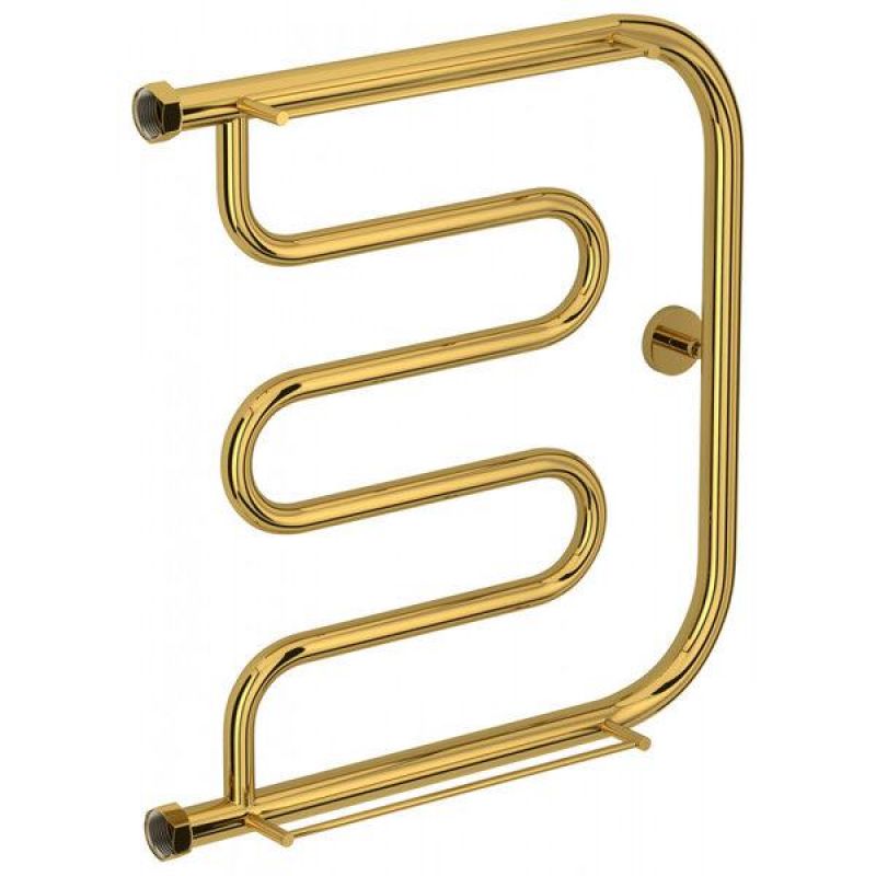 Полотенцесушитель водяной Сунержа Лира+, высота 50 см, ширина 50 см, боковое подключение 50 см, с 2 полками, цвет золото, 03-4012-5050