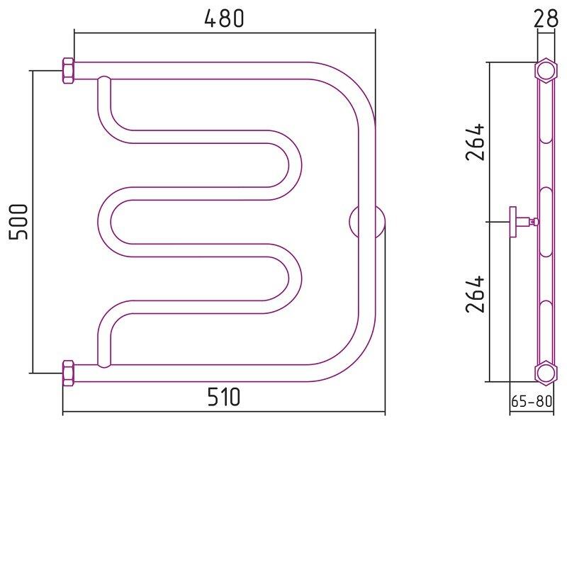 Полотенцесушитель водяной Сунержа Лира, высота 50 см, ширина 50 см, боковое подключение 50 см, цвет шампань, 020-0011-5050