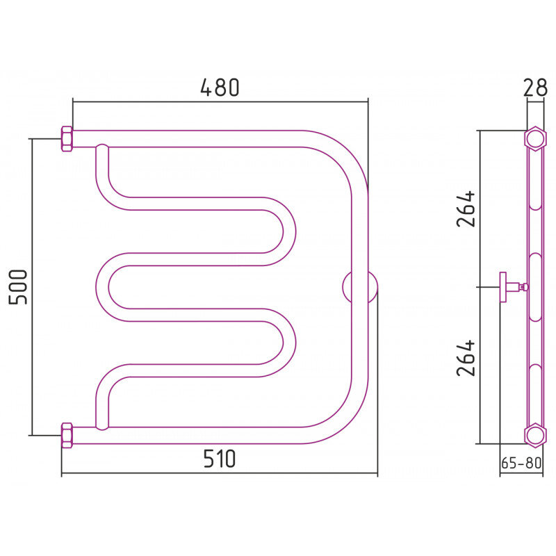 Полотенцесушитель водяной Сунержа Лира+, высота 50 см, ширина 50 см, боковое подключение 50 см, цвет золото, 03-4011-5050