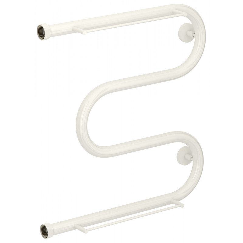 Полотенцесушитель водяной Сунержа М-образный+ 12-4008-5050, высота 50 см, ширина 50 см, боковое подключение 50 см, с 2 полками, цвет белый