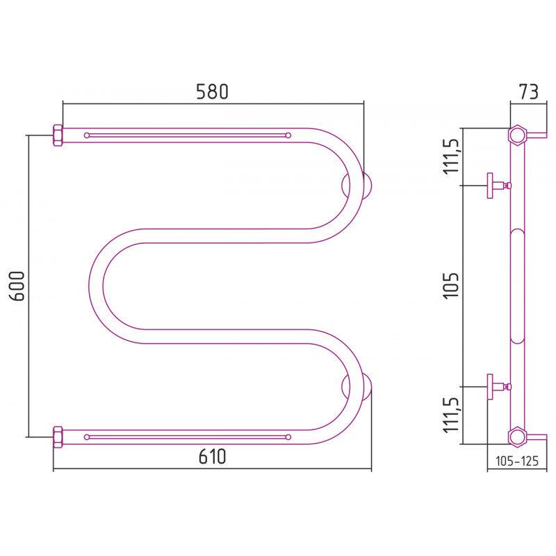 Полотенцесушитель водяной Сунержа М-образный+ 15-4008-6060, высота 60 см, ширина 60 см, боковое подключение 60 см, с 2 полками, цвет тёмный титан муар